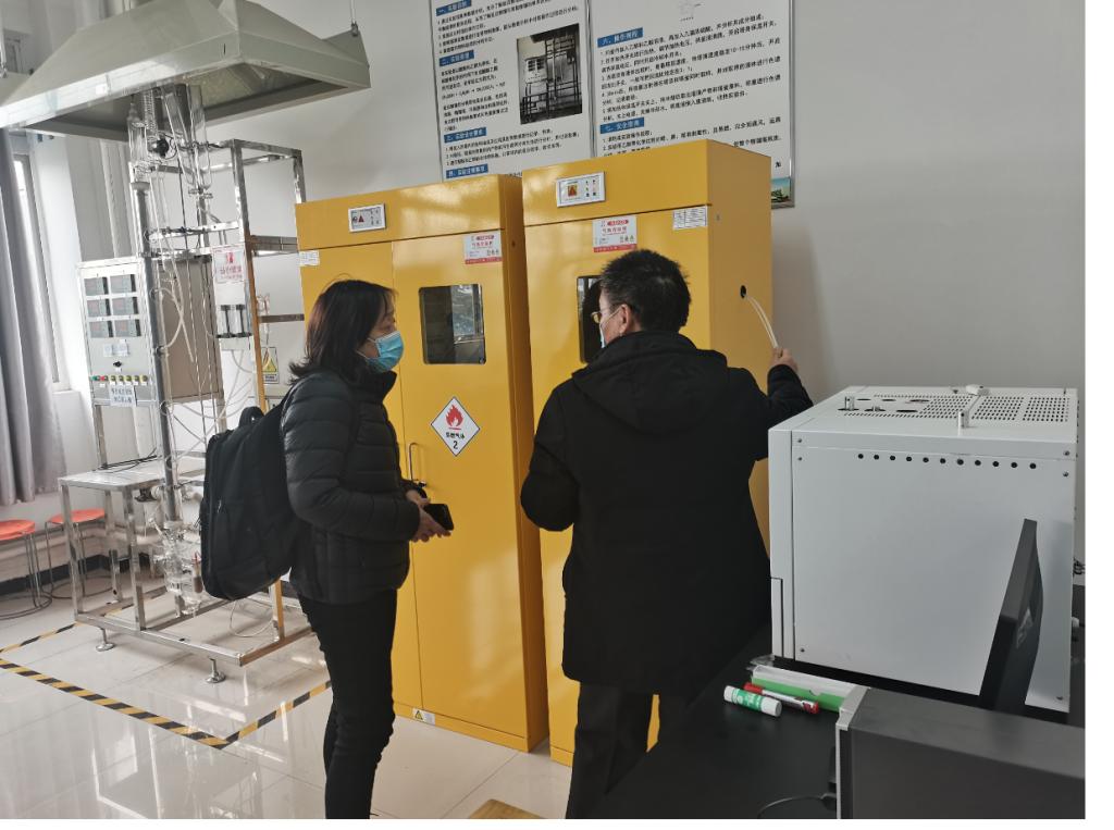 2020年12月23日下午2:00-5:00,化工系王敏和吴祯祯两位老师赴湖北工业大学参观化工实验室。在湖北工业大学材料与化学工程学院胡兵教授的带领下,老师们参观了化工专业实验室和化工原理实验室,胡教授结合专业认证的标准和要求,详细介绍了化工专业和化工原理实验室设备的摆放要求、安全规范、通风设施等,及实验室工作日志和实验室安全操作规程培训记录表的填写要求。老师们也就实验过程中常见的一些问题,与胡教授进行详细的讨论。
