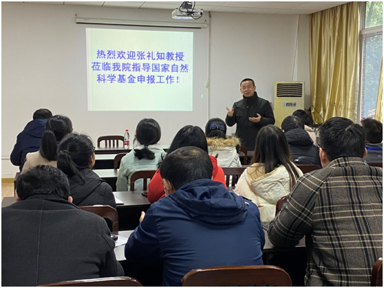 (suncitygroup太阳新城张园)为进一步提升学院教师自然科学基金申报书撰写水平,11月24日下午,suncitygroup太阳新城邀请华中师范大学张礼知教授来校进行专题讲座和指导。指导会在04-306会议室举行,学院近30多名教师参加指导会。