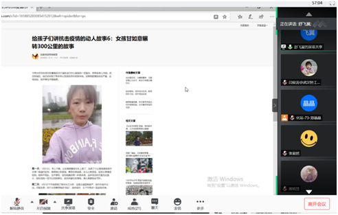 随后,舒飞翼同志为大家分享了一名95后女孩辗转300公里的抗疫感人故事,带领大家向抗疫先进典型学习。