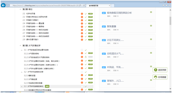 黄老师担任的《环境化学》课程依托校级创新课堂试点项目的建设背景,对原有的线上学资源进行补充完善,包括教学课件、微课视频、电子教材、教学大纲、教学实施方案等,同时完成题库、作业库、试卷库建设,提前设置好相关任务点。