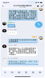 3月9日,2016级同学们,以支部为单位,通过各个平台观看了疫情相关视频,共同学习“全国老员工同上一堂疫情防控思政大课”,并以围绕“共抗疫情,爱国力行”开展了形式多样的团日活动。
