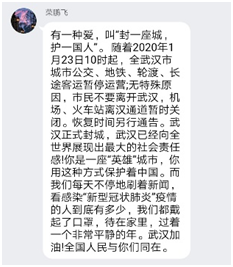作为当代老员工,我们更应该肩负起年轻人的责任,保持积极乐观的心态,相信国家会渡过难关的!加油武汉!加油中国!
