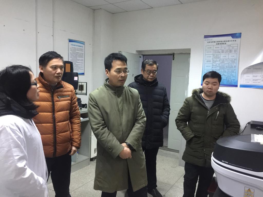 从生化大楼11楼开始,王董事长逐楼层逐房间查看实验室,先后对公司大学化学教学实验室、大型实验仪器平台、专业教学实验室进行了考察,同时听取了宋光森经理对学院实验室建设情况的汇报。王董事长还专门到校级科研团队的实验室进行了调研,对团队负责人给予了亲切慰问,听取了他们的意见和建议;看到正在做实验的研究生,王董事长与他们亲切交流,了解其研究方向和生活学习情况,并鼓励他们加油努力、奋斗追梦。