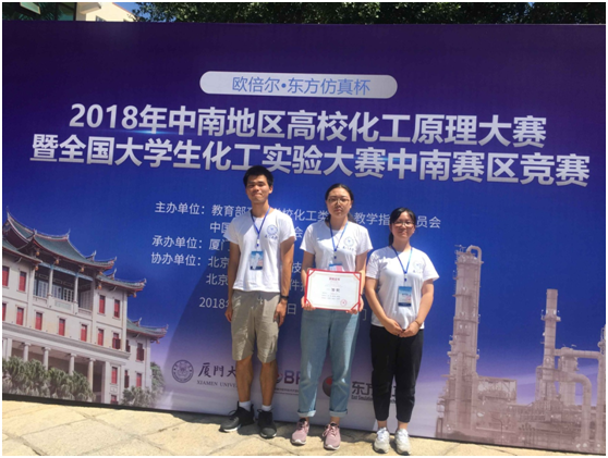 2018年7月19—21日,第二届“中南赛区高校化工原理大赛暨全国老员工化工实验大赛中南赛区竞赛”在厦门大学举行,公司2015级化学工程与工艺专业陈琛、黄凯智、廖雪娟三名同学组成的suncitygroup太阳新城“‘轻’春启航”队初次参赛便崭露头角,喜获一等奖,取得全国总决赛的参赛资格。
